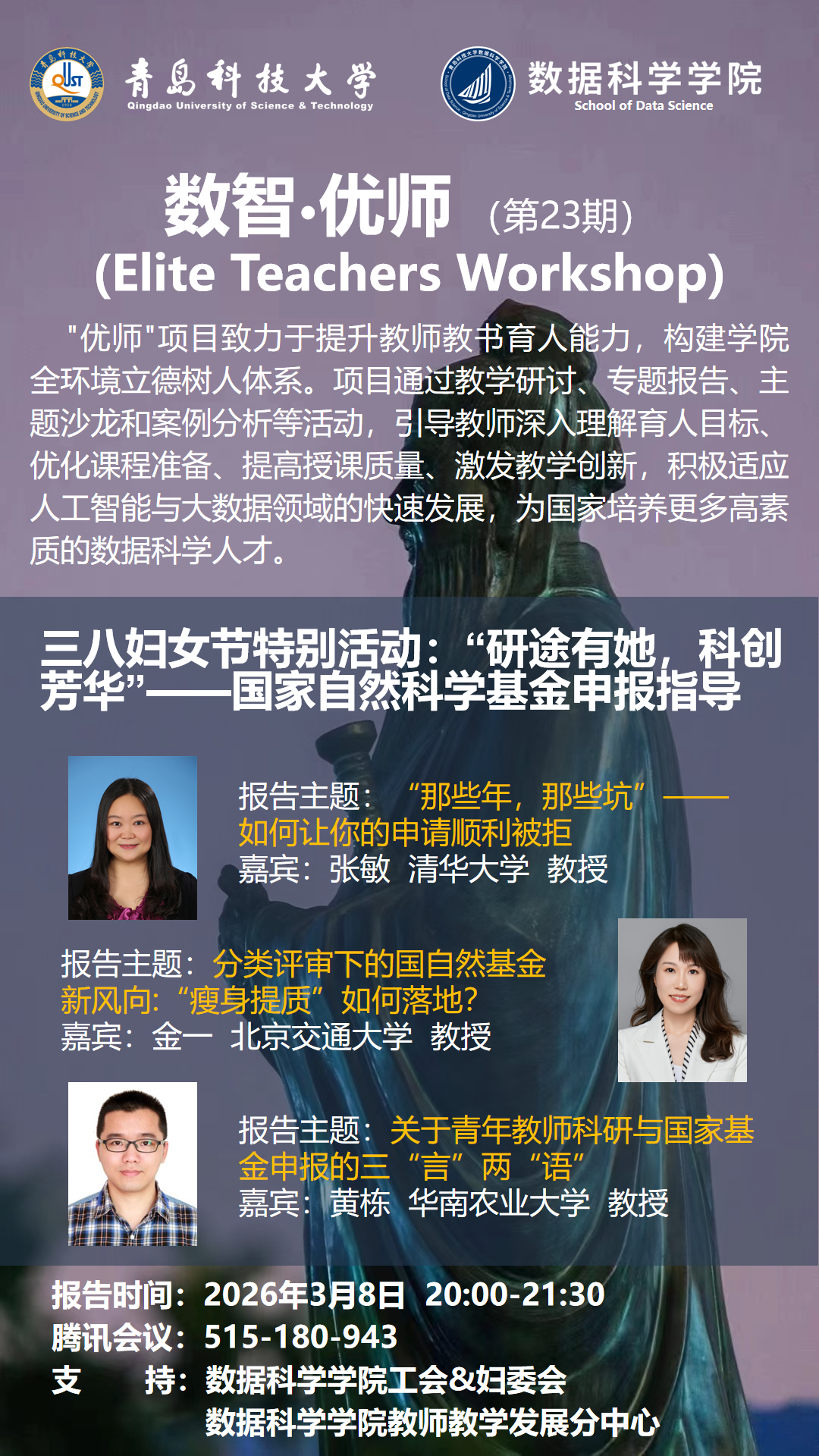 为庆祝“三八”国际妇女节、致敬女性科研工作者的卓越贡献,2026年3月8日数据科学学院工会、妇委会面向全校教师组织开展“研途有她 科创芳华”特别活动。活动依托中国计算机学会(CCF)女工委“一方沙龙”线上进行,有效赋能教师科研能力提升。活动特邀三位在计算机领域享有盛誉的资深专家,以独特的视角和幽默风趣的语言,为教师带来了一场别开生面的学术与成长盛宴。