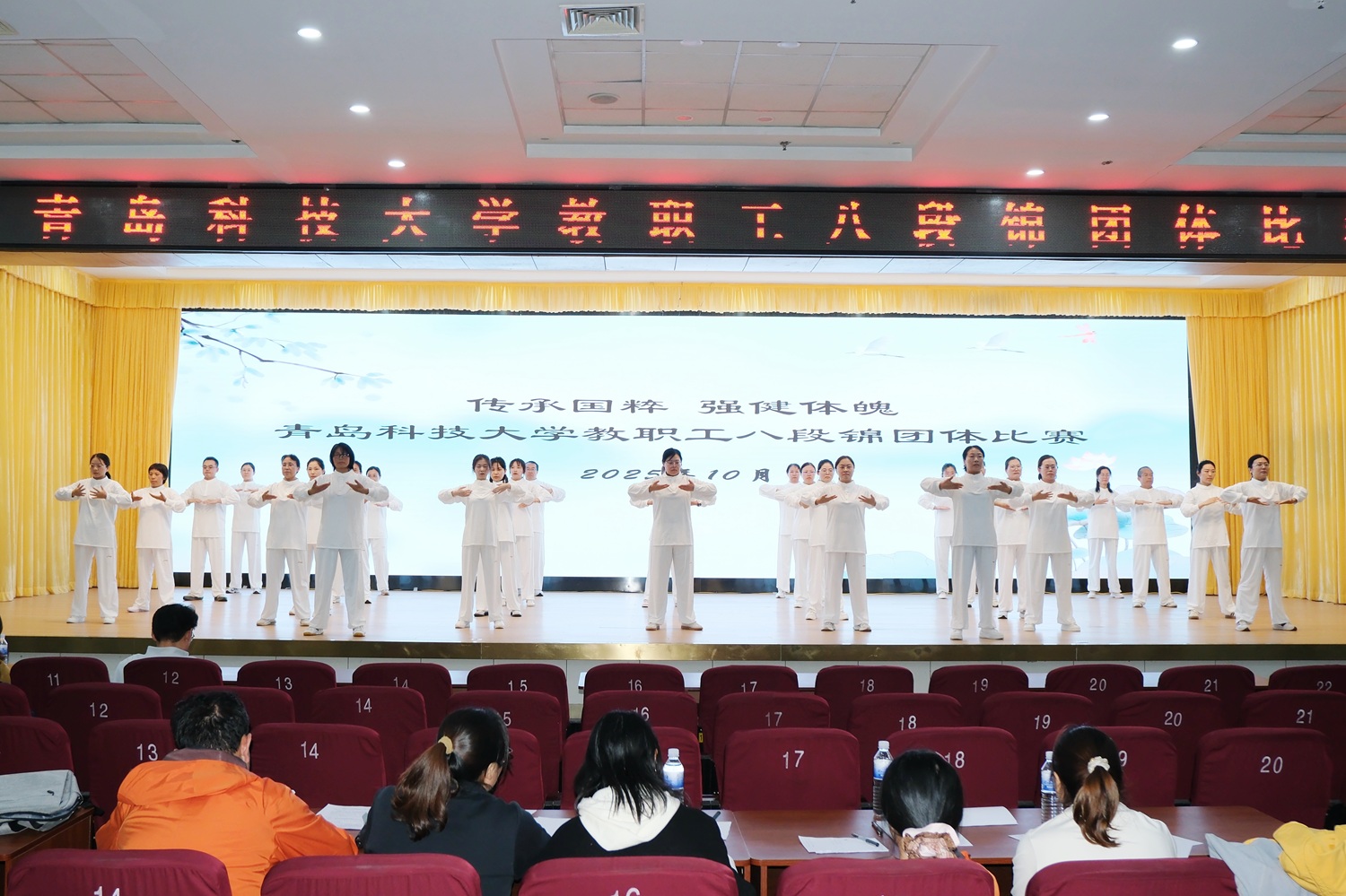 10月28日下午,青岛科技大学教职工八段锦团体比赛在崂山校区第二报告厅举行,党委副书记沈文青,党委常委、党委统战部部长秦姣出席并为获奖团体颁奖。