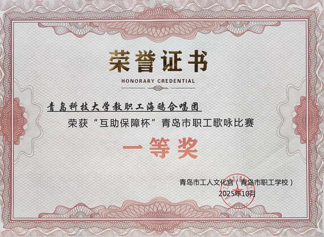 近日,由青岛市总工会举办的“互助保障杯”青岛市职工歌咏比赛圆满落下帷幕,我校教职工海鸥合唱团荣获一等奖,校工会获评优秀组织奖。