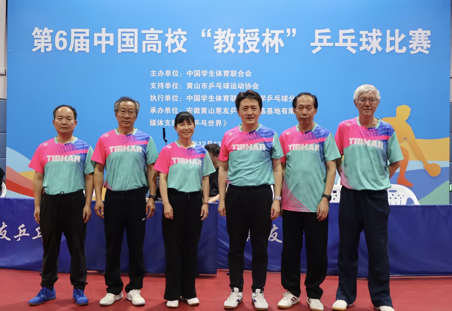 2025年12月13日至14日,第六届中国高校“教授杯”乒乓球比赛在安徽黄山惠友乒乓球训练基地顺利举行。我校吴明铂教授与郝春成教授搭档出战,在竞争激烈的50—59岁男子双打项目中勇夺第五名,展现出顽强拼搏的体育风采。