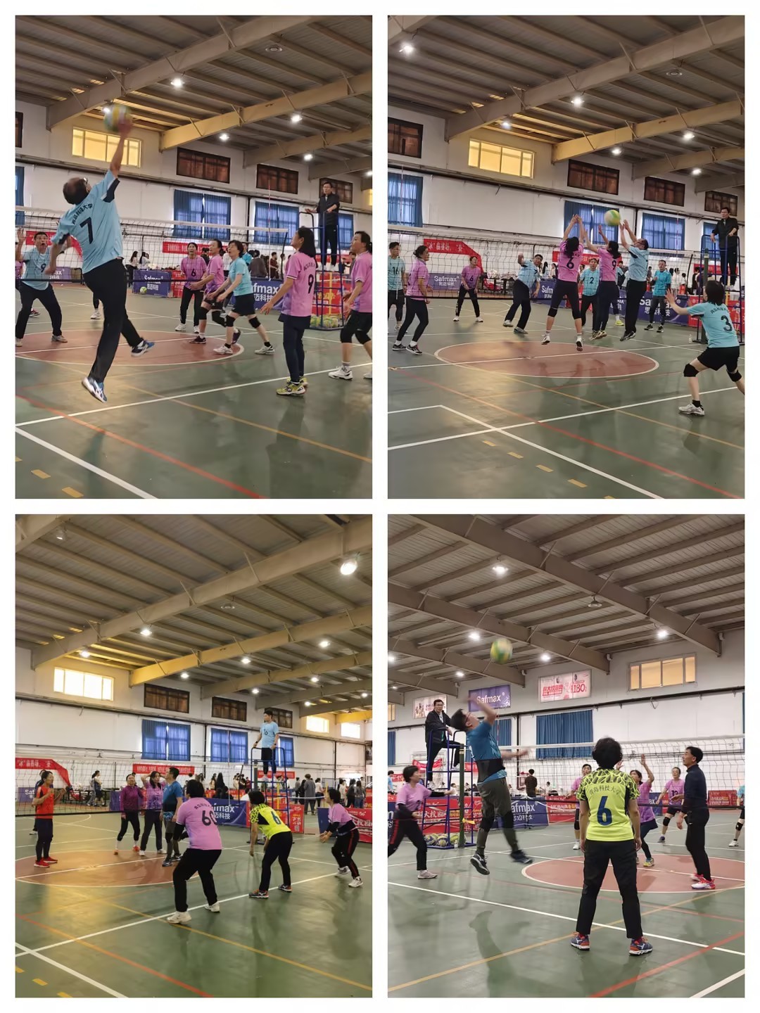 赛场上各代表队团结拼搏,精准的拦网、有力的扣杀、奋不顾身的救球、默契的团队配合……精彩场面接连不断,活力四射年轻队员的加入让气排球比赛非常有观赏性,老队员的二次球,打吊结合的灵活打法也是足以让观战者的欢呼声响彻整个排球场了。 一场场精彩焦灼的比赛,这不仅是技战术的较量,更是意志与团队精神的集中展示,老师们以实际行动诠释了“不畏强手、奋勇争先”的竞技风貌。
