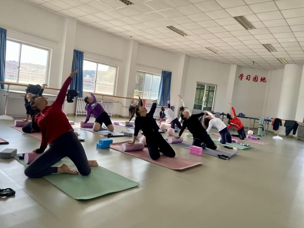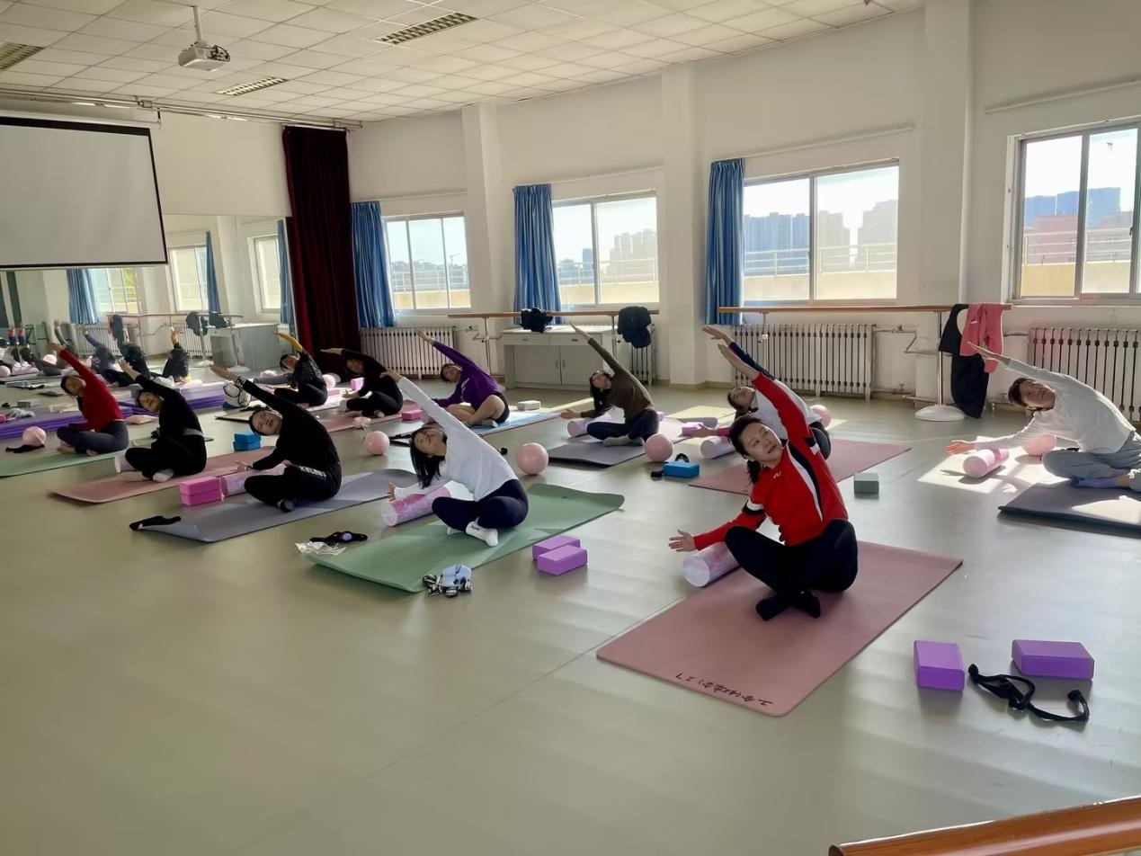 青岛科技大学教职工瑜伽协会于2024年11月正式成立,从初始30余名会员起步,历经一年稳健发展,目前规模已达百余人。协会以“健康身心、赋能工作”为核心宗旨,建立常态化活动机制,固定每周两个时段开展训练,聚焦教职工伏案工作易引发的肩颈僵硬、臀腿无力等问题,设计理疗、力量训练及平衡拉伸等专项课程,精准匹配会员需求。